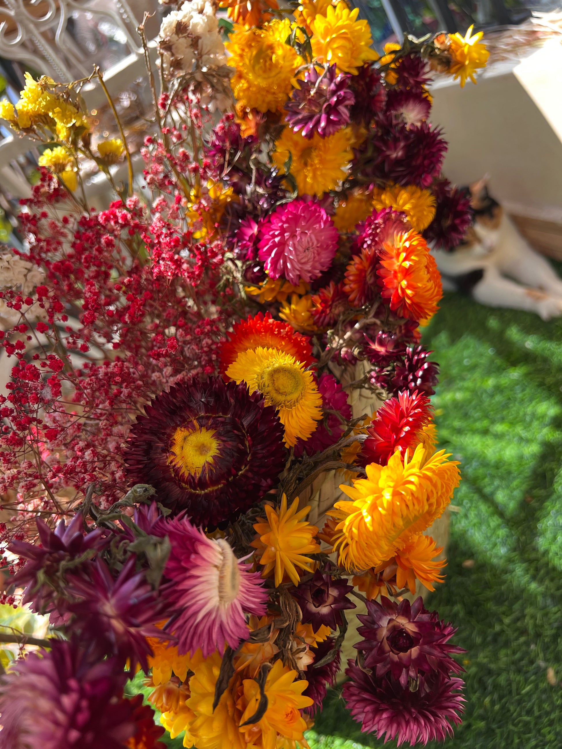 Sun-dried Everlasting Daisies maintain 100% of their fresh look and texture. They have earthy colours that are perfect for those who want a splash of colour but retain the outdoor plantation look.